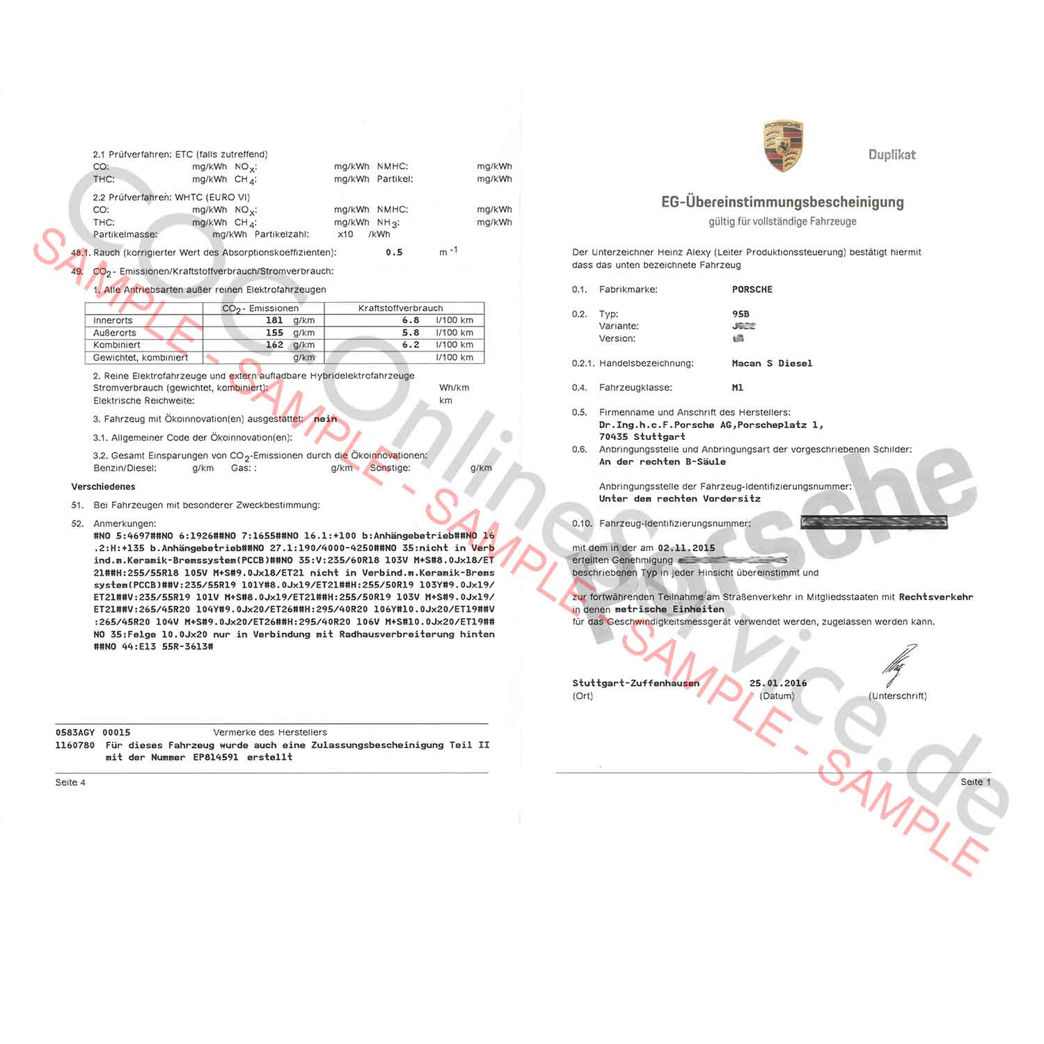COC-dokumenter til Porsche (Certificate of Conformity)
