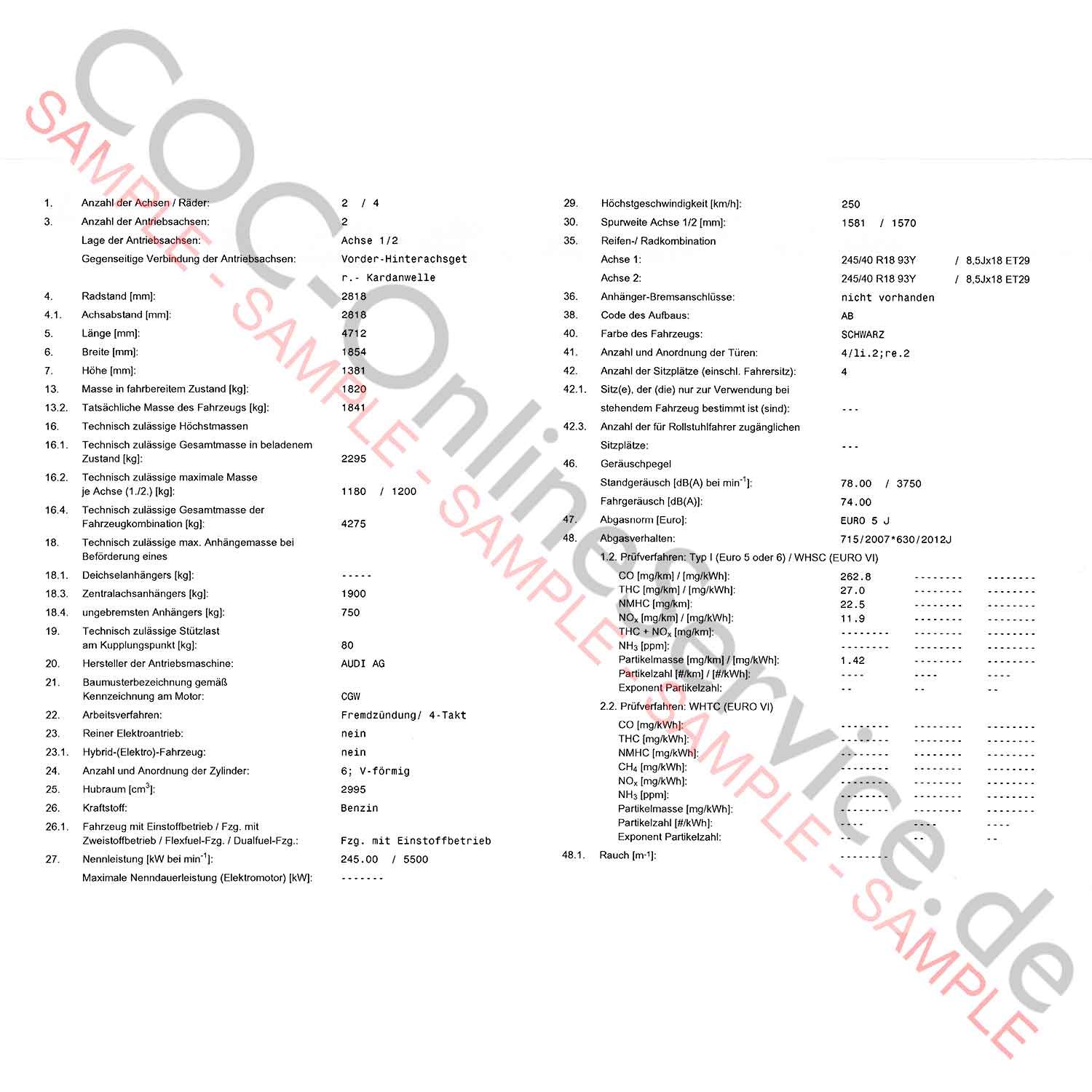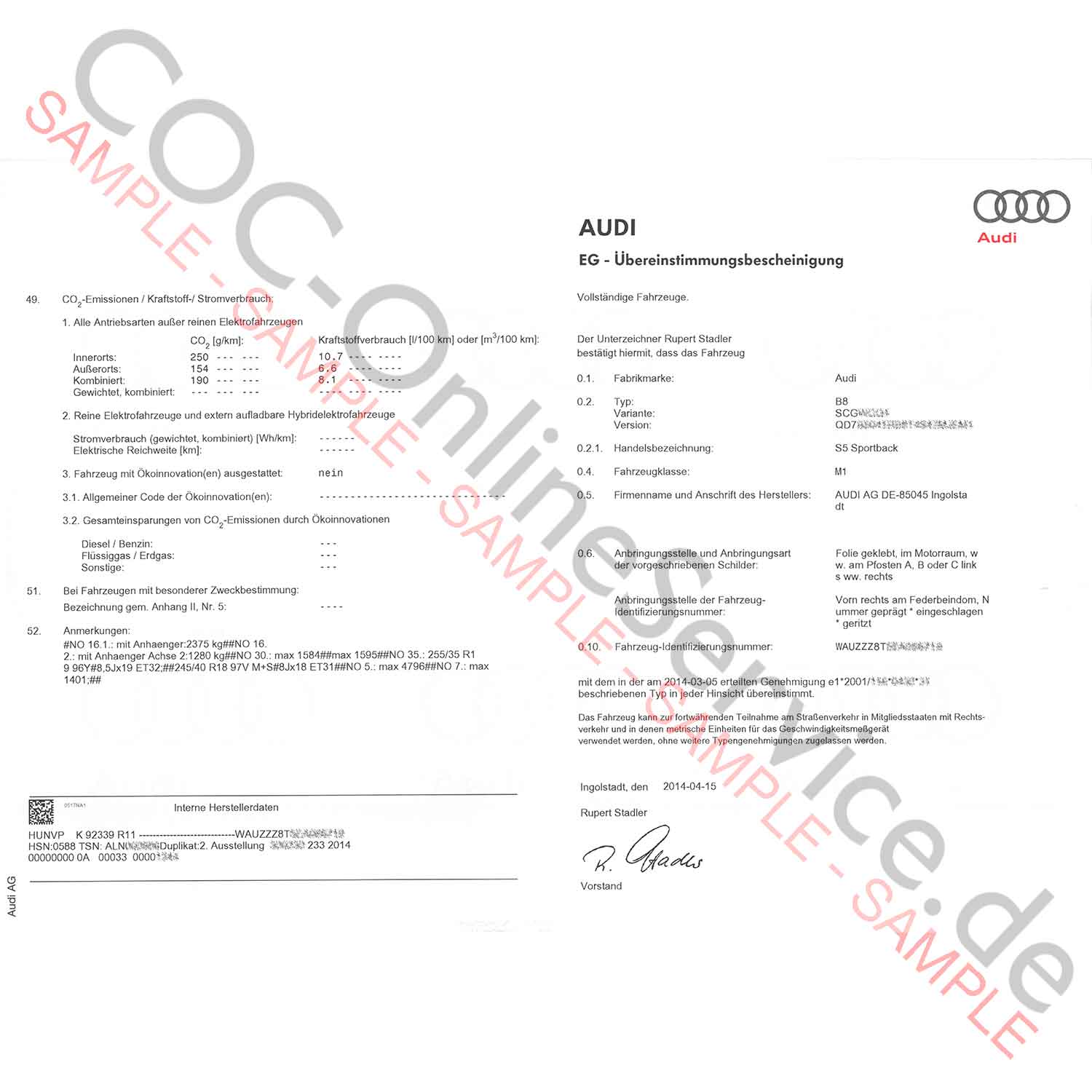 Once the document is created by the vehicle manufacturer, you will receive an eMail with the PDF of your COC. With this copy it is possible in many cases to register your vehicle or to make a technical inspection. The original document will then be sent to you by mail or express.