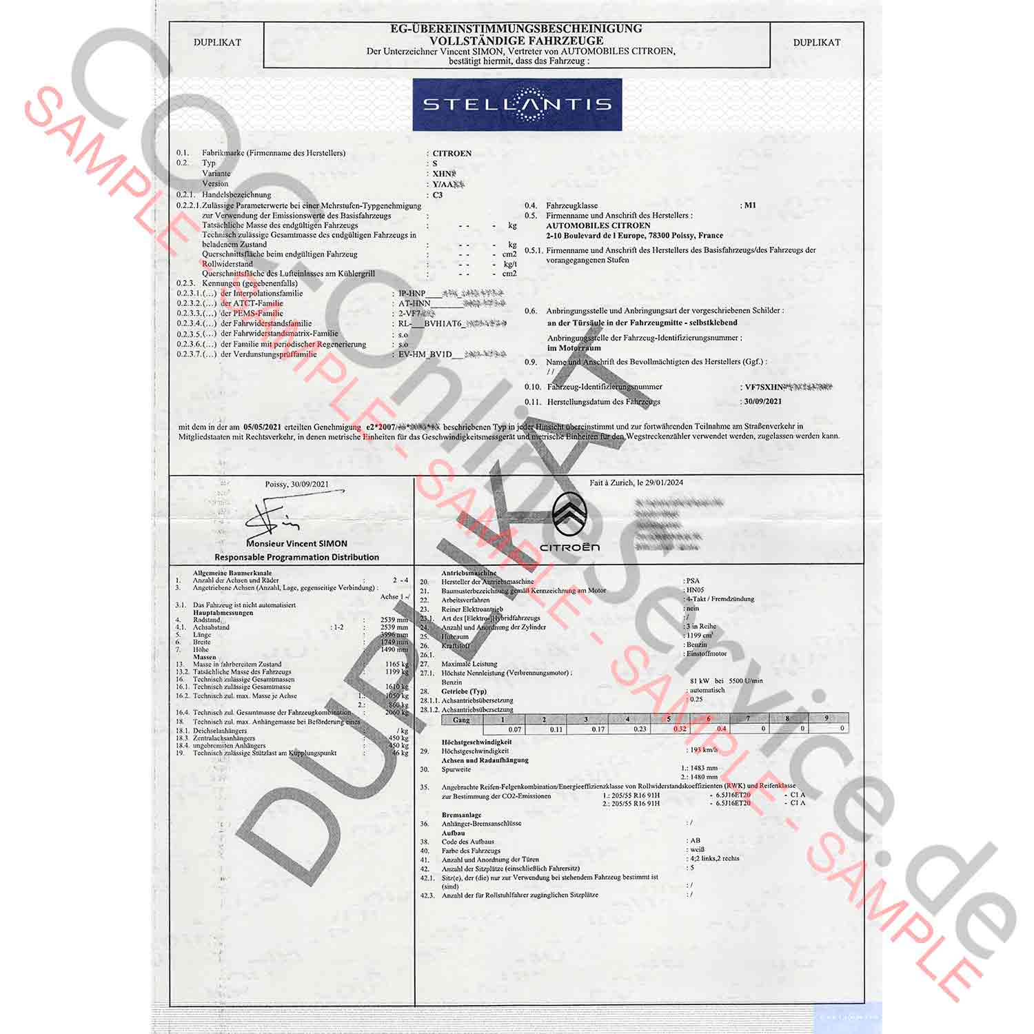 COC-dokumentit Citroënille (Certificate of Conformity)