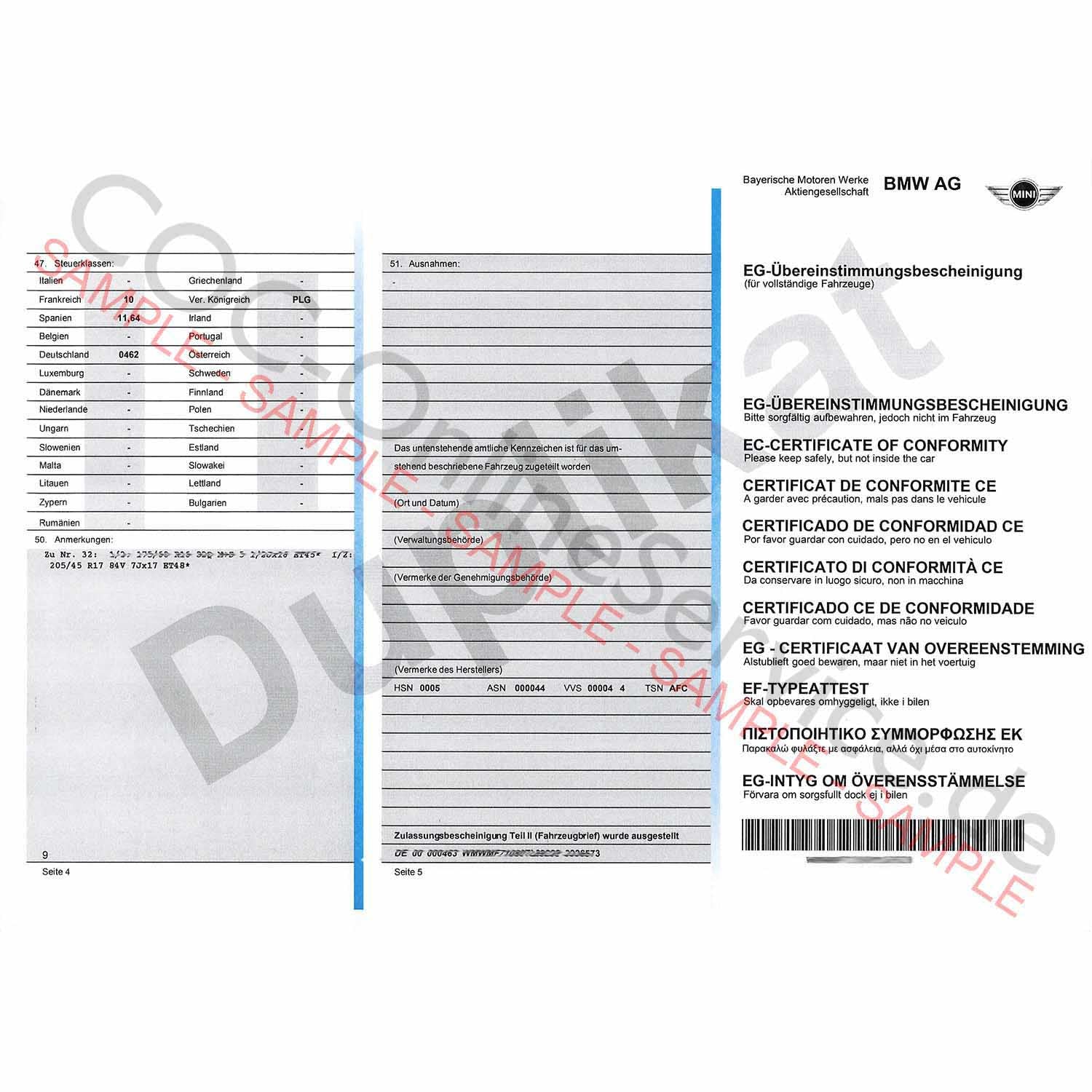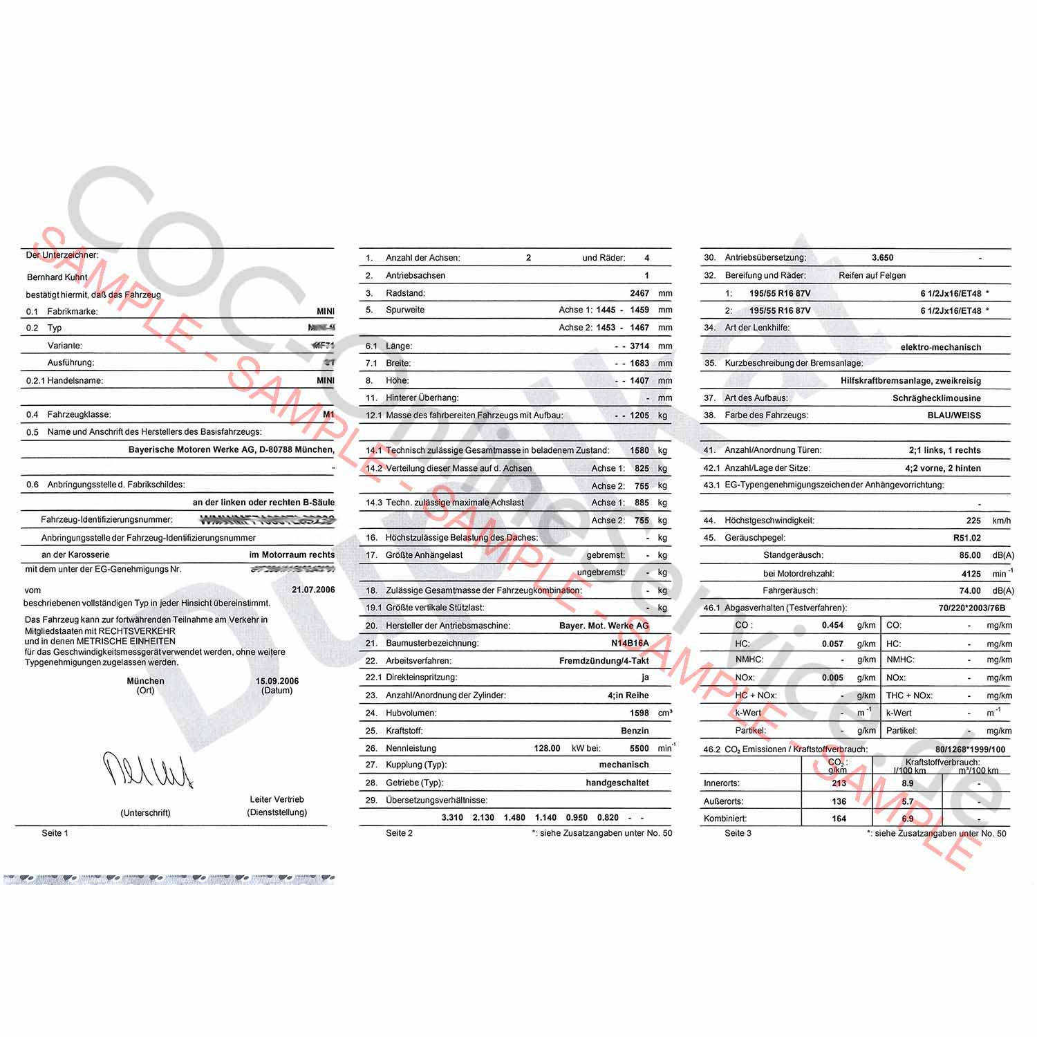 Dokumenty COC dla MINI (Certificate of Conformity)